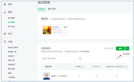 2)將我方小程序支持人員,設(shè)置為小程序開發(fā)者,并提供企業(yè)微信的參數(shù)