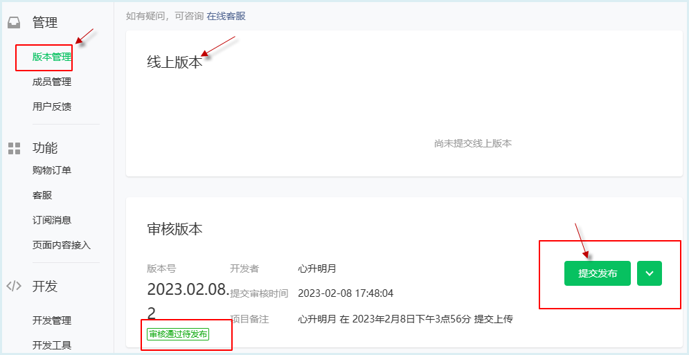 4)等待微信的測(cè)試審核,通過后,小程序才能發(fā)布