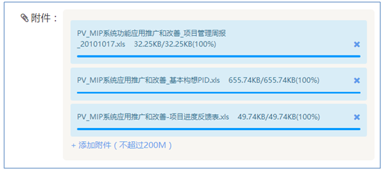 上傳完成后系統(tǒng)會(huì)在“創(chuàng)建任務(wù)”彈框上列表顯示已經(jīng)上傳的附件,如下圖所示: