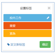 標(biāo)簽的目的是為了便于區(qū)分任務(wù)的性質(zhì),每個(gè)人都可以根據(jù)自己的習(xí)慣給任務(wù)創(chuàng)建一些標(biāo)簽,這些標(biāo)簽會(huì)出現(xiàn)在任務(wù)顯示上,不同的標(biāo)簽用不同顏色來區(qū)分,因此也可以通過顏色來區(qū)分任務(wù)的類型。
