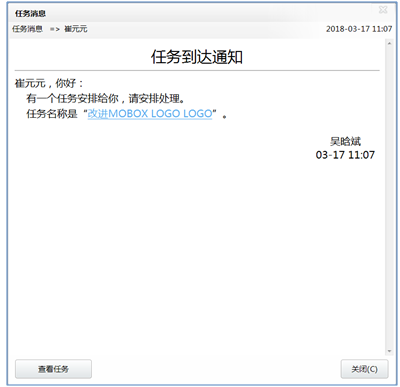 任務創(chuàng)建后系統(tǒng)把任務到達通知執(zhí)行人,如果你安裝過AM系統(tǒng),AM系統(tǒng)會在第一時間給執(zhí)行人發(fā)一個任務到達消息,點開AM消息即可查看任務,并確認是否執(zhí)行,具體操作如下: