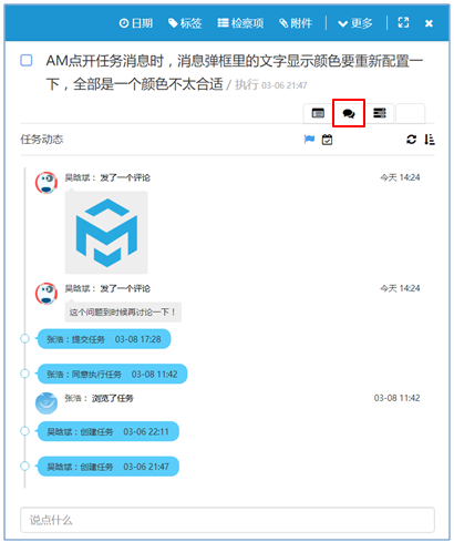點上圖中的“”頁簽即可顯示任務的動態(tài)及交流頁面,如下圖所示: