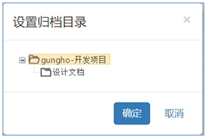 - 點擊上圖紅色框線區(qū)域的的“設置歸檔目錄”,系統(tǒng)彈出一個如下圖所示的項目文檔柜目錄選擇彈框。