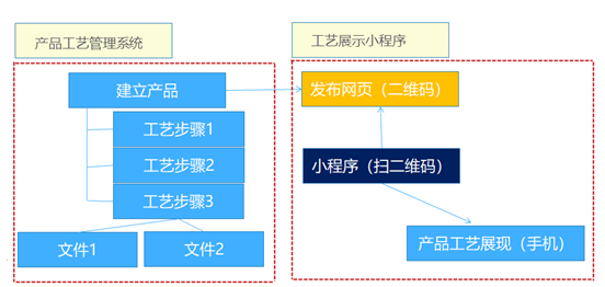 2)生產(chǎn)加工教學(xué)用:企業(yè)在全國乃至全球有分部或分廠,不通地區(qū)的工人可以通過工藝展示系統(tǒng)了解及學(xué)習(xí)產(chǎn)品制作工藝或某工序詳細(xì)加工過程。(可以在某工位上掃描一下二維碼進(jìn)行查看詳細(xì)加工過程)