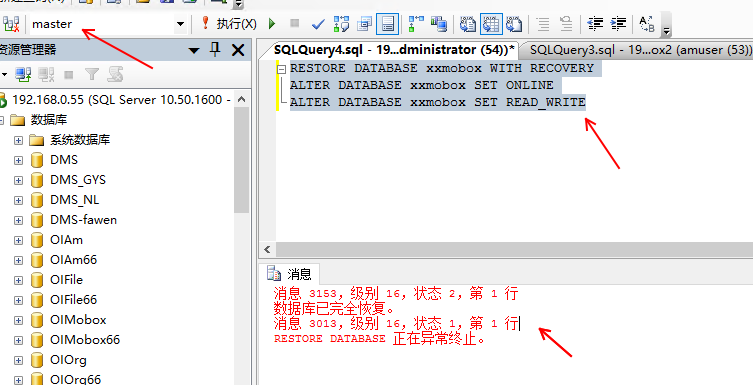今天遇到一個(gè)非常詭異的現(xiàn)象,xxmobox數(shù)據(jù)庫(kù)還原后提示成功,但這個(gè)數(shù)據(jù)庫(kù)無法被dns服務(wù)鏈接。經(jīng)過分析發(fā)現(xiàn) xxmobox數(shù)據(jù)庫(kù)狀態(tài):關(guān)閉,正常