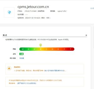 根據(jù)https://myssl.com/ 得知域名將為B級