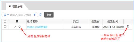 國家某試驗中心,在試驗項目完成后,進(jìn)入該項目,點擊“總結(jié)” ,進(jìn)行試驗報告自動生成。(實現(xiàn)檢測報告電子化)