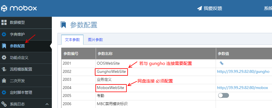 2)Mobox網(wǎng)盤/文檔系統(tǒng),需要設(shè)置如下服務(wù)參數(shù)