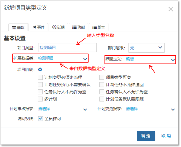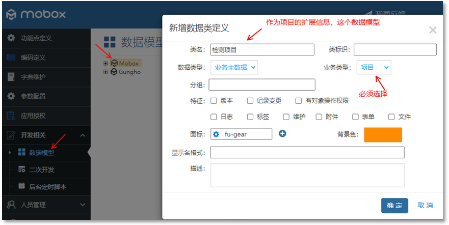 企業(yè)在實(shí)施項(xiàng)目管理系統(tǒng)的時候,不通類型的項(xiàng)目其屬性可能是不一樣的。而Gungho標(biāo)準(zhǔn)系統(tǒng)內(nèi)對項(xiàng)目的屬性,主要包括(項(xiàng)目名稱、編號、開始結(jié)束日期等)。為了適應(yīng)企業(yè)個性項(xiàng)目信息的輸入,我們需要通過Mobox平臺定義項(xiàng)目類型去適應(yīng)這個需求
