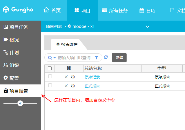 系統(tǒng)選擇某一個(gè)項(xiàng)目進(jìn)入后,針對項(xiàng)目操作增加自定義命令,截圖如下
