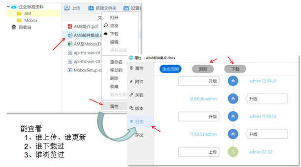 在文檔管理系統(tǒng)中任何人對(duì)文檔進(jìn)行了任何操作均會(huì)留下痕跡,下圖是文檔瀏覽日志示例,在文檔管理系統(tǒng)中點(diǎn)開一個(gè)文檔進(jìn)行瀏覽時(shí)可以在頁(yè)面的右邊欄里查看該文檔的所有操作日志