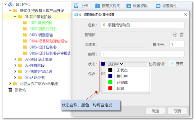 2)可以設(shè)置項(xiàng)目個(gè)節(jié)點(diǎn)完成狀態(tài)